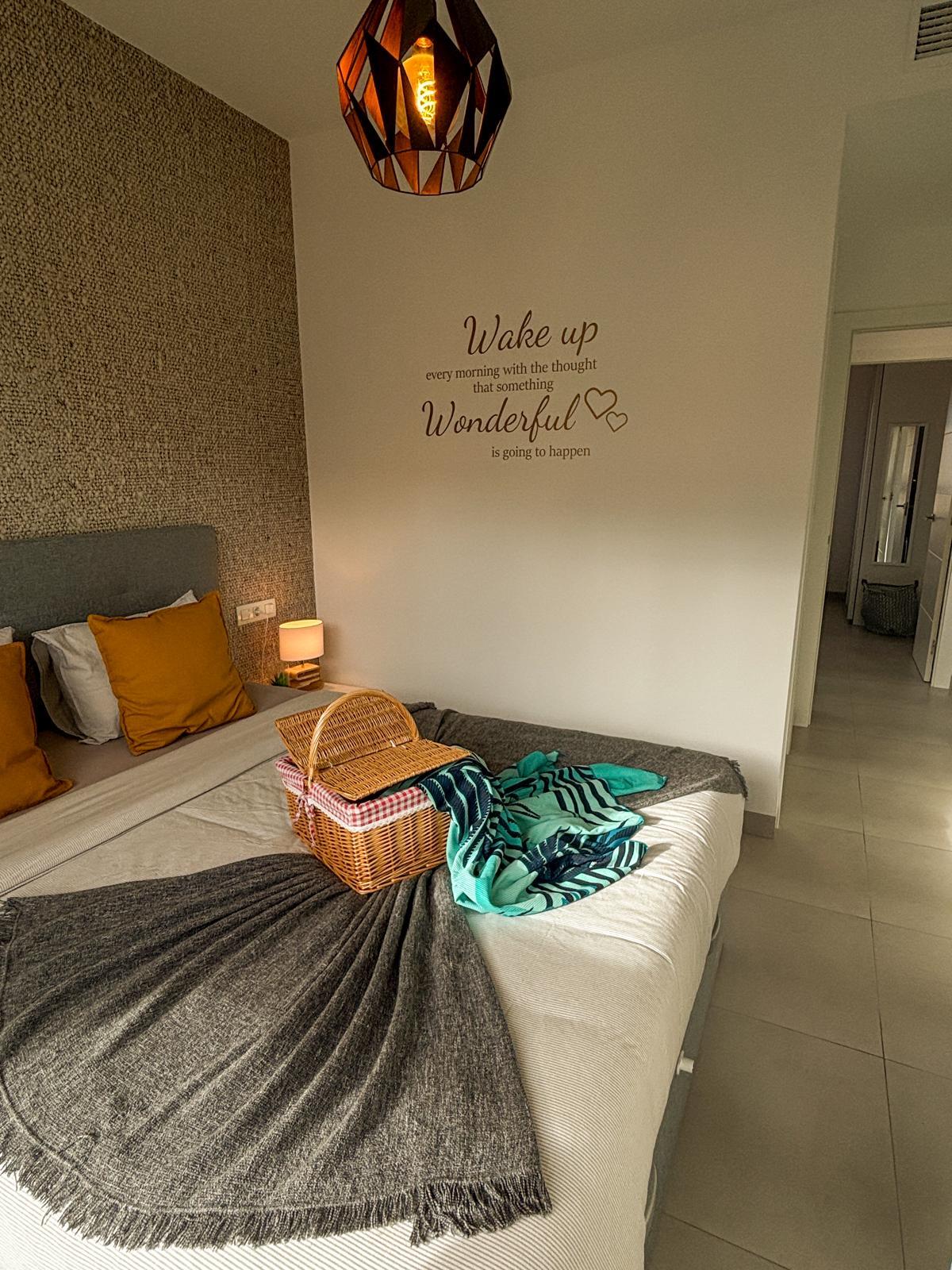 El apartamento cuenta con 3 dormitorios y 2 baños. El alojamiento ofrece privacidad, un jardín comunitario con césped, maravillosas vistas a la piscina y al jardín, así como hermosas vistas a la calle. Su comodidad y la proximidad a la playa, áreas comerciales, actividades deportivas y lugares de entretenimiento hacen de este un excelente apartamento para disfrutar de sus vacaciones en España con familia o amigos.