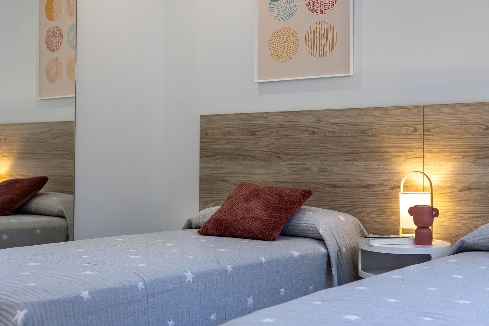 • dormitorio con aire acondicionado y 2 camas individuales (dimensiones de 200 por 90 cm)