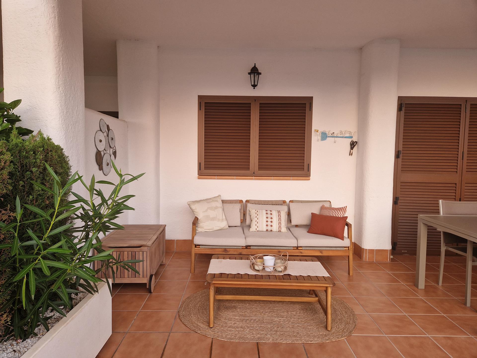 Apartamento moderno y acogedor con piscina comunitaria en San Juan de los Terreros, Andalucía, España para 4 personas. El apartamento de vacaciones está situado en un resort de playa con , en una zona residencial y montañosa, cerca de supermercados y a 500 m de la playa.
