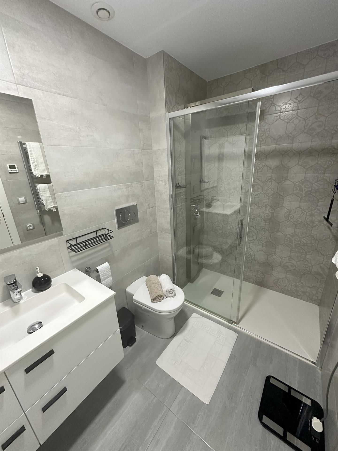 • baño con lavabo individual, ducha e inodoro