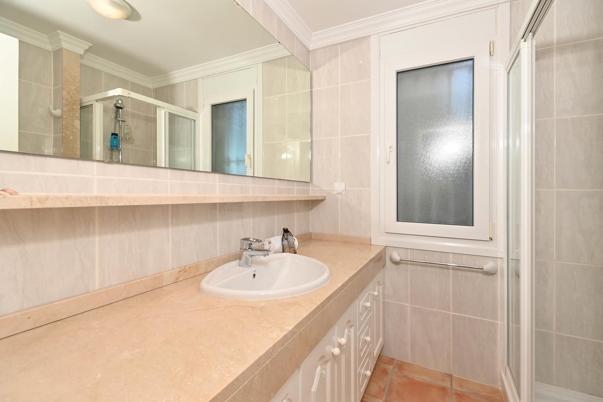 • Badezimmer mit Einzelwaschbecken, Dusche und Bidet