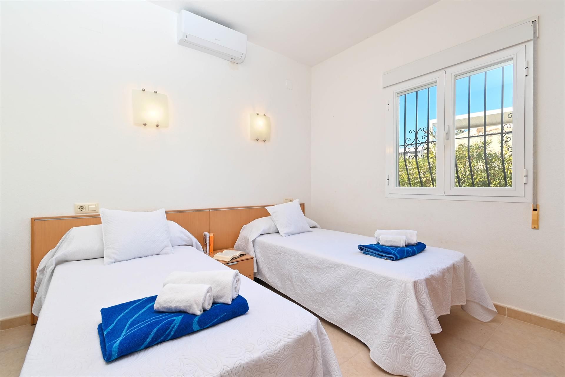 • 2 bedrooms with air conditioning, each with 2 single beds (measuring 190 by 90 cm)