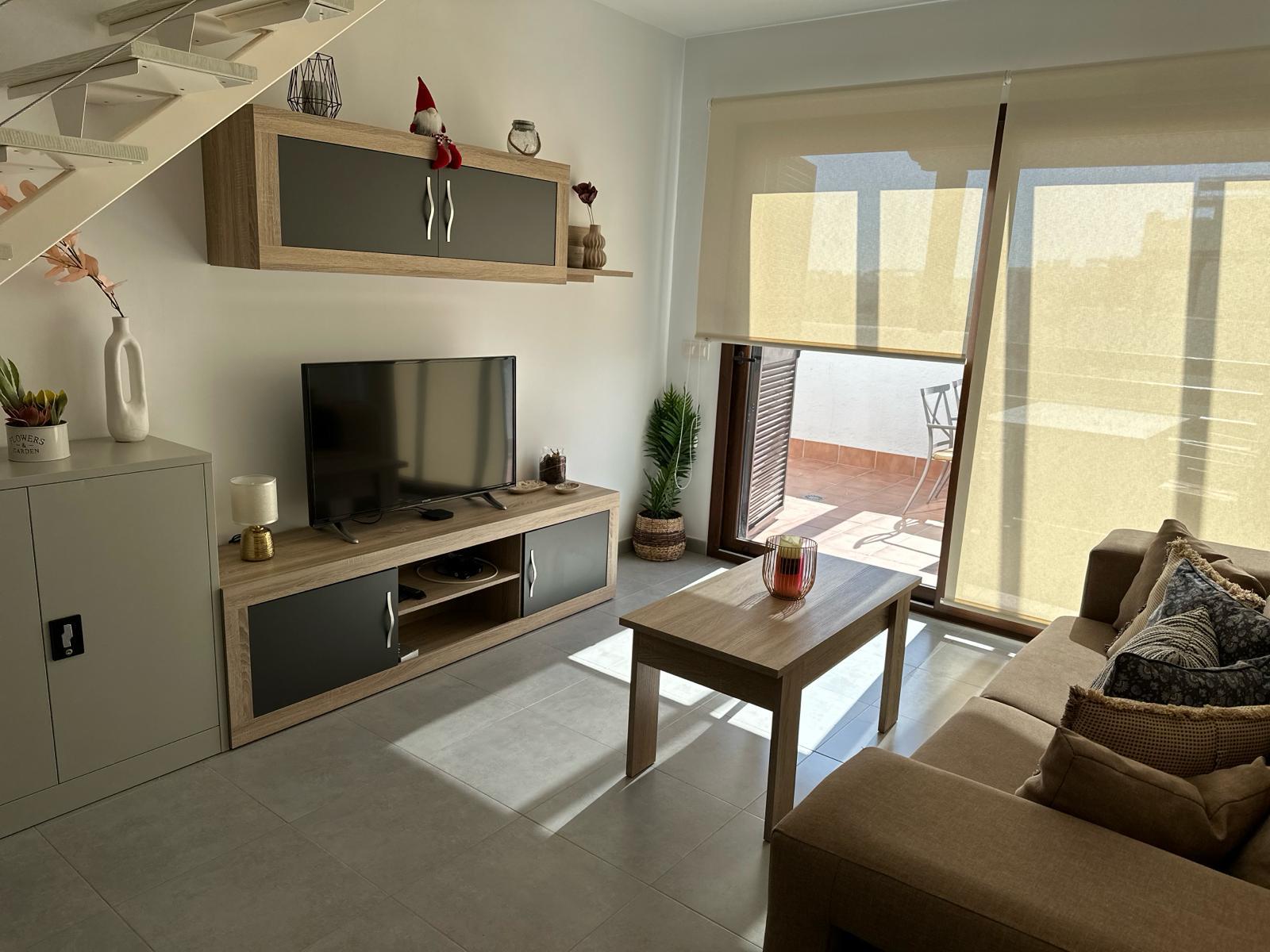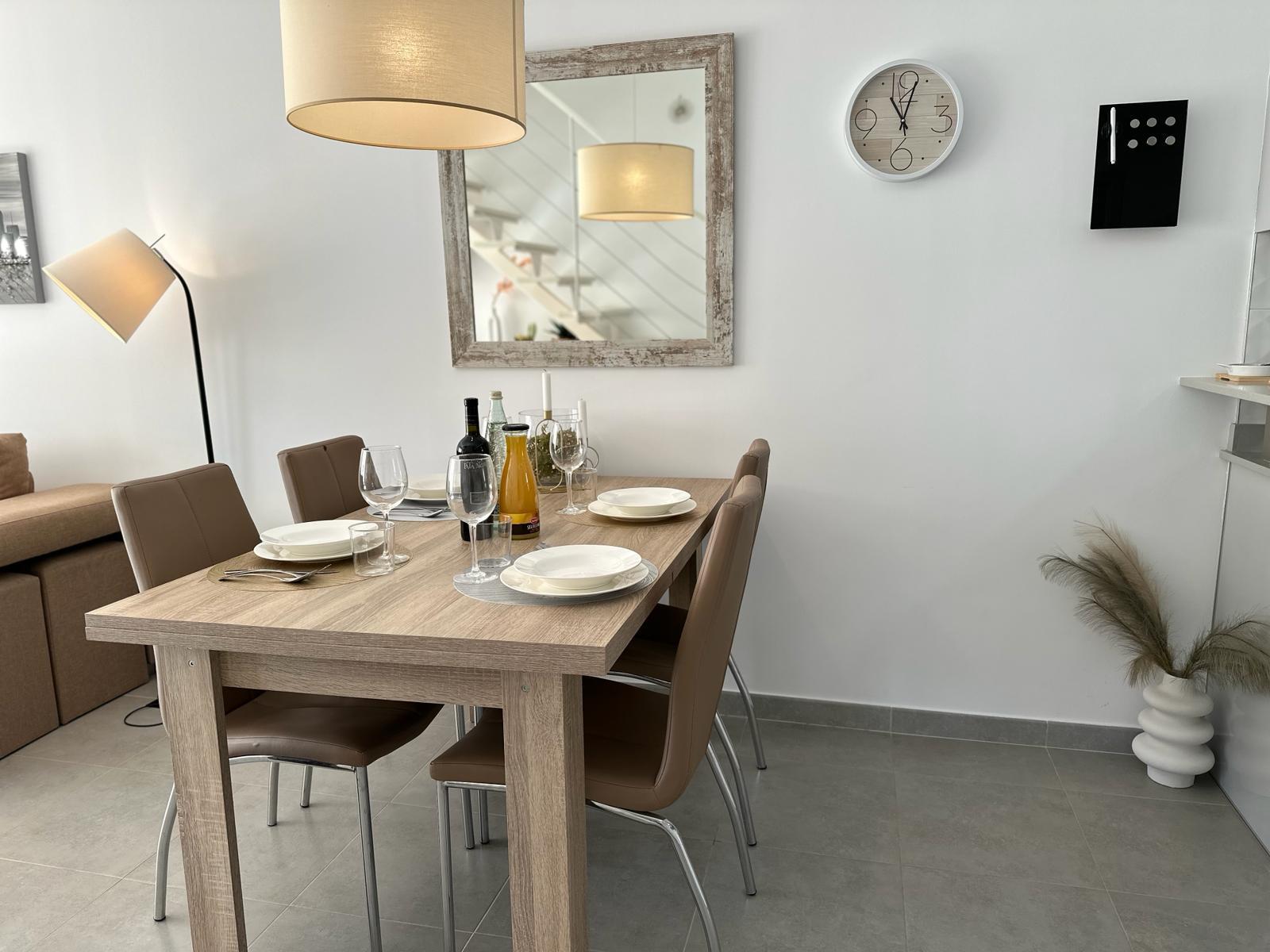 - Intérieur : Entièrement meublé, réfrigérateur, four ou grill électrique, cafetière, connecteur, bouilloire, fer à repasser, planche à repasser, lave-linge et mixeur.