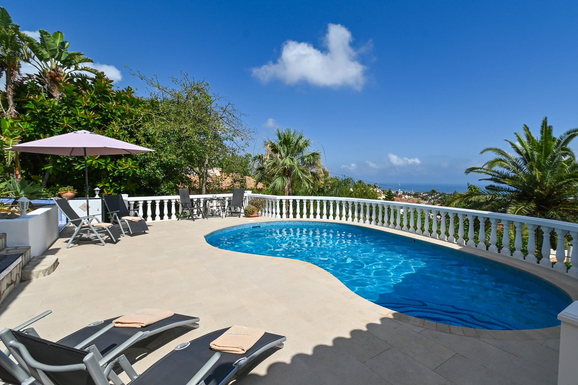 Magnifique et confortable villa avec piscine privée à Denia, Costa Blanca, Espagne pour 8 personnes. La maison est située dans une zone résidentielle près de la plage, à proximité d'un court de tennis, à 3 km de Las Marinas, plage de Denia et à 5 km de Javea.