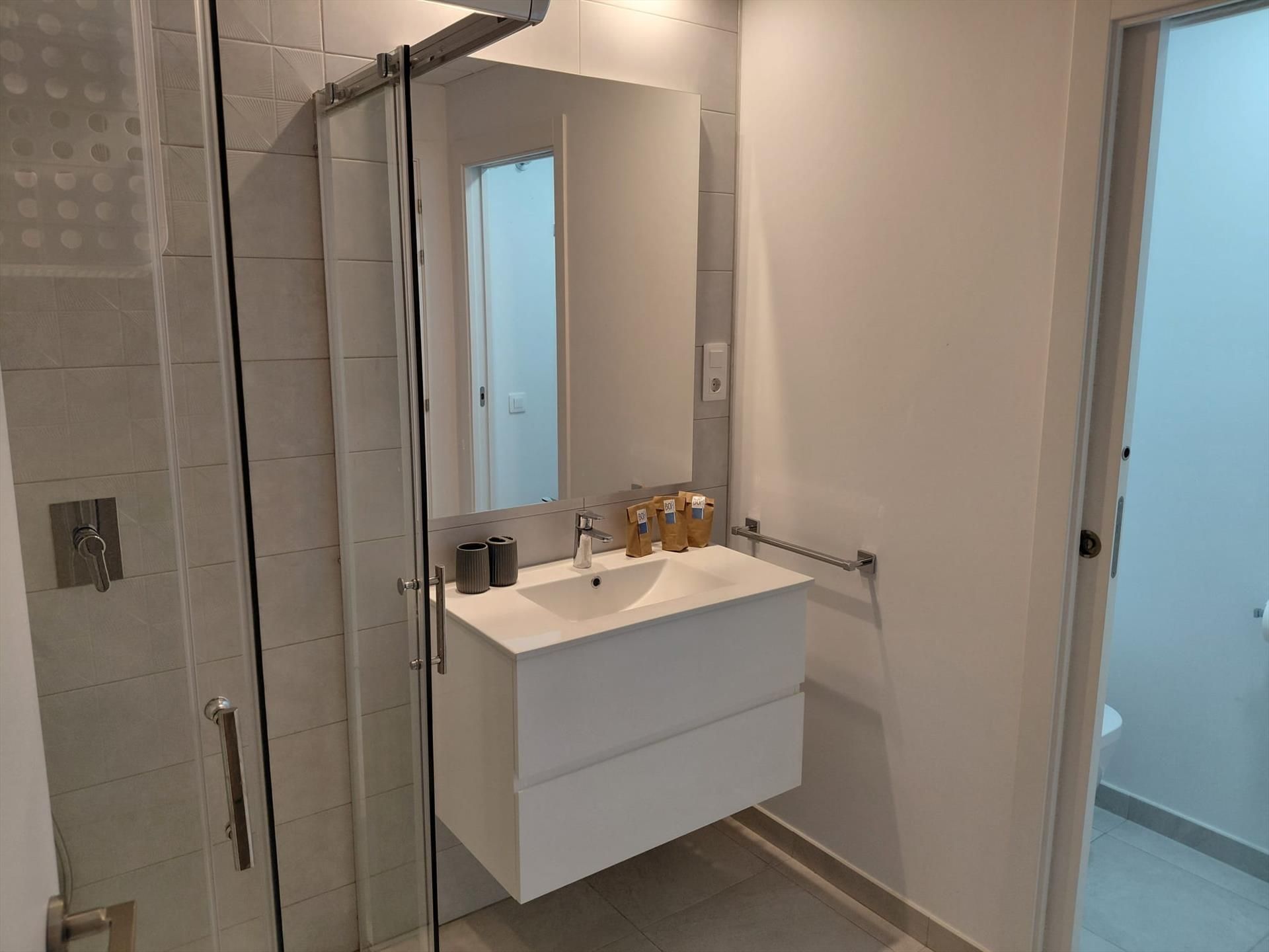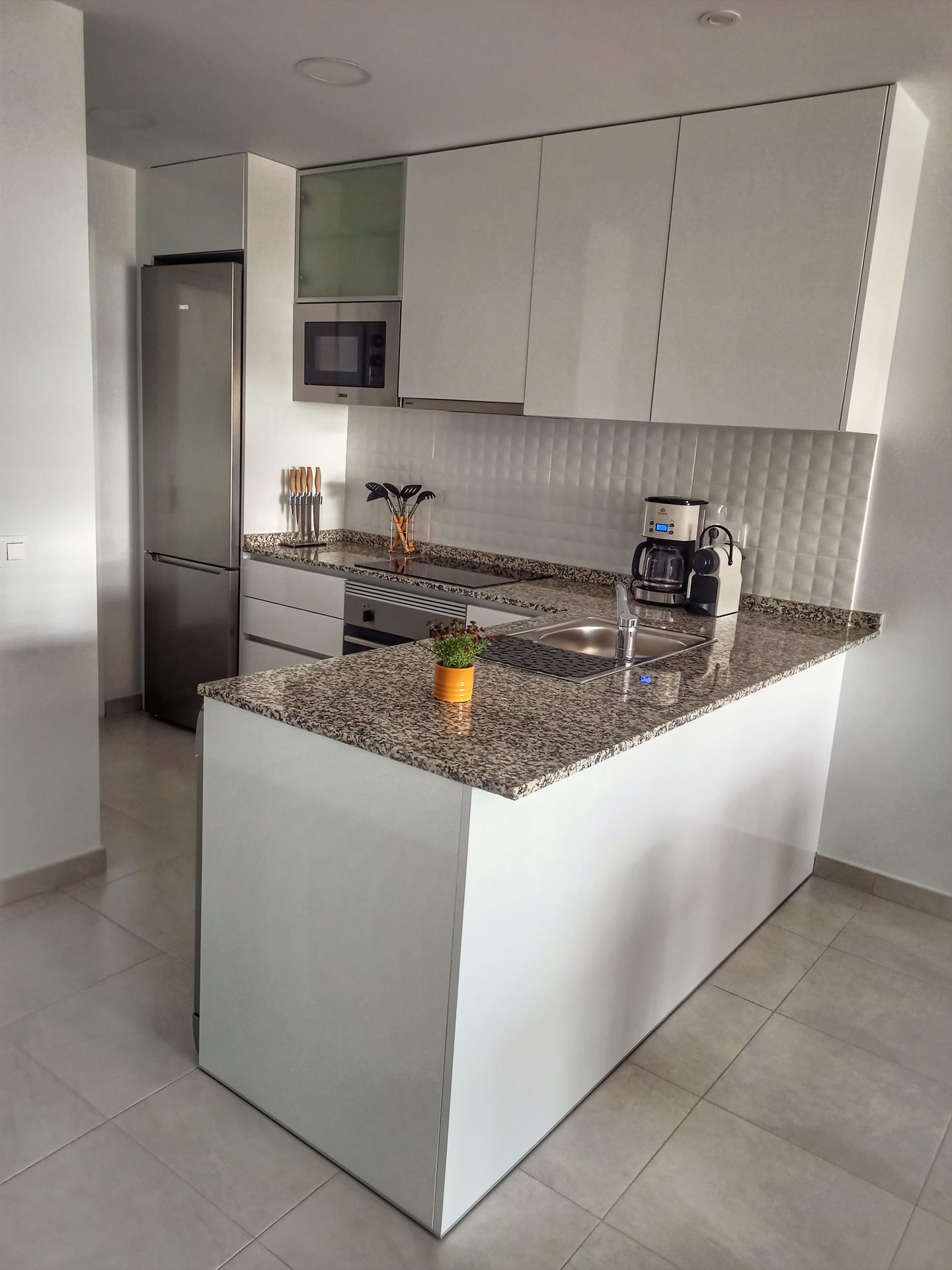 - Interieur: Volledig gemeubileerd, koelkast, oven of electrische grill, koffiezetapparaat, broodrooster, waterkoker, strijkijzer, strijkplank, wasmachine en mixer.