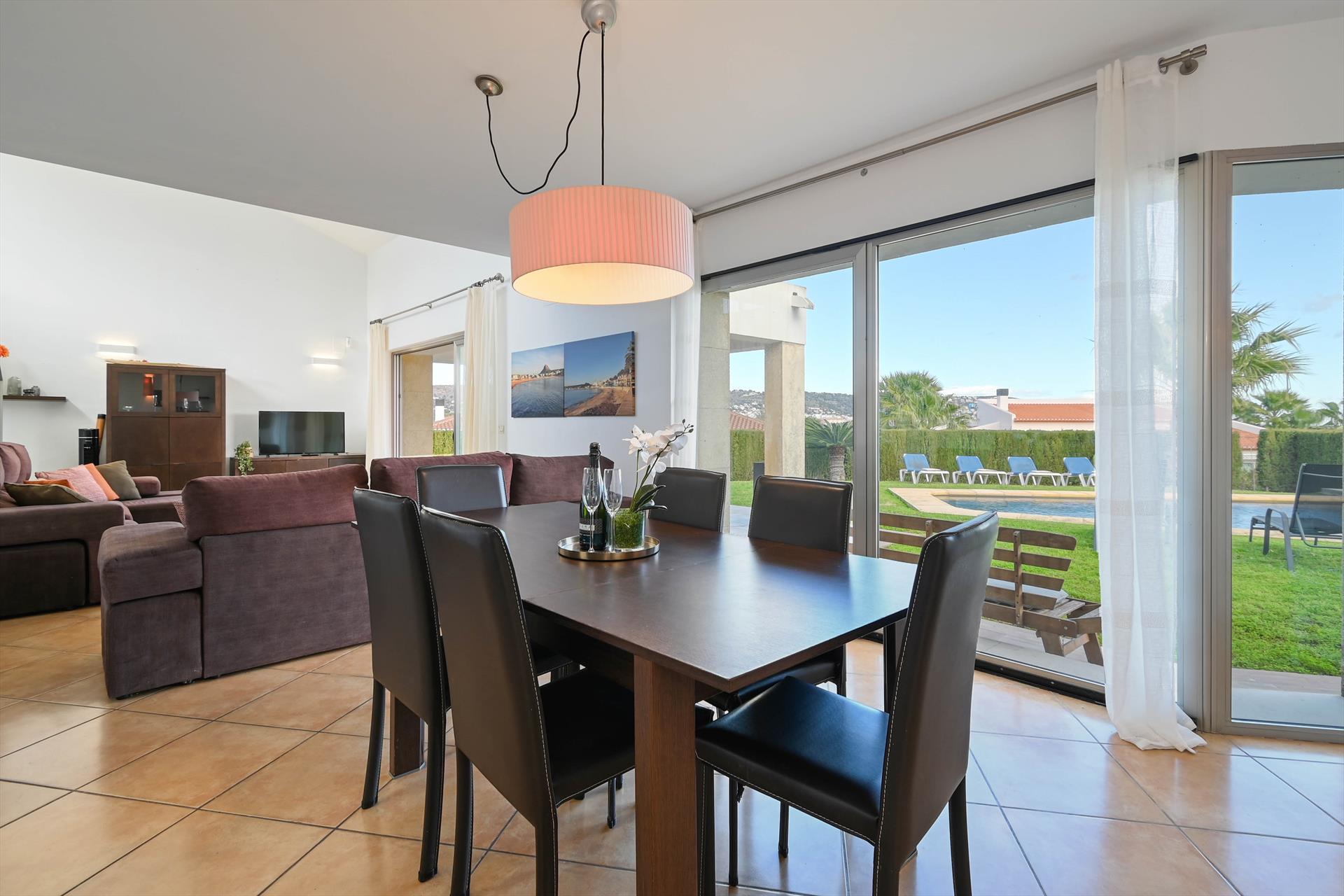 De villa heeft 4 slaapkamers en 3 badkamers, verdeeld over 2 niveaus. De accommodatie biedt een prachtige gazontuin met bomen, een mooi zwembad en uitzicht op de bergen. De nabijheid van het strand, sportactiviteiten, entertainmentfaciliteiten, uitgaansgelegenheden, bezienswaardigheden en cultuur maakt dit een fijne villa om uw vakantie in Spanje met familie of vrienden door te brengen.