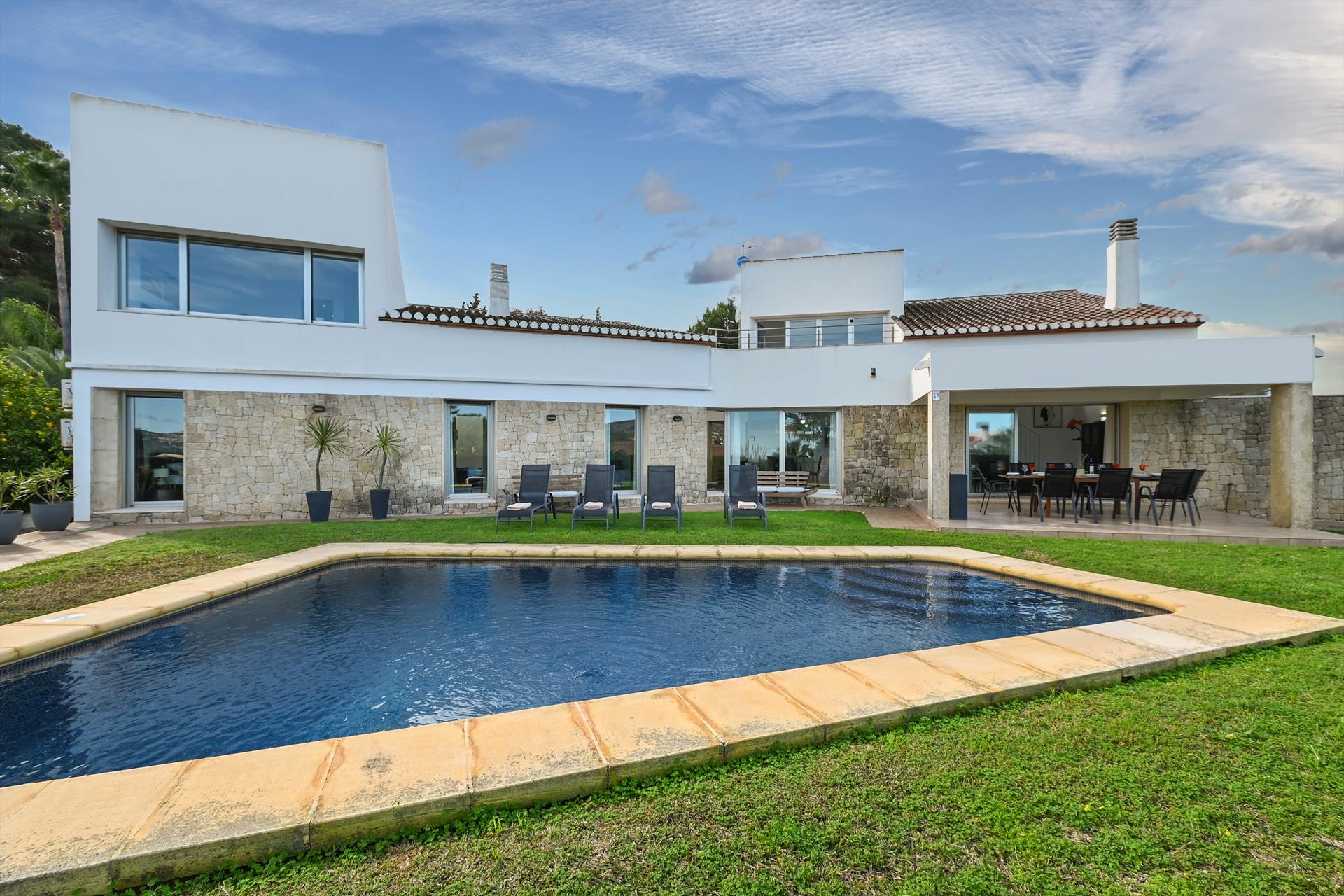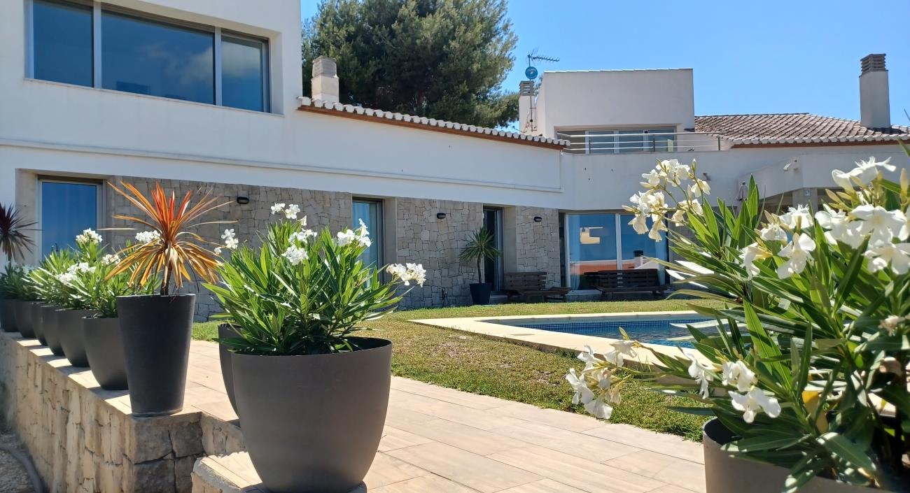 Grote en mooie villa in Jávea, Costa Blanca, Spanje met privézwembad voor 8 personen. Het huis is gelegen in een residentiële strandwijk en op 4 km van het strand van Playa del Arenal.